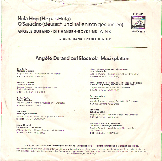 "Hula Hop" / "O Saracino" (Electrola E 21 045, 1958)