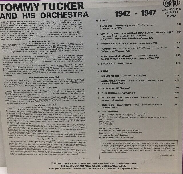 Im selben Jahr gründete er seine erste Band und spielte unter der Bandbezeichnung Tommy Tucker and His Californians (eine neunköpfige Band) einige Schallplatten (1934 für Vocalion?) ein. Dabei war Tucker selbst der Bandsänger.