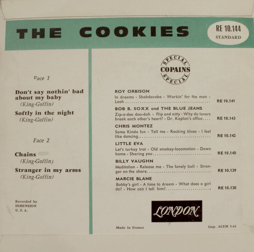 Kurze Story: Etwa 1954 wurde in Brooklyn, New York, das Gesangs-Trio The Cookies von Dorothy Jones, „Ethel“ Darlene McCrea und Beulah Robertson gegründet. Letztere wurde von 1956 bis 1958 durch Margie Hendricks ersetzt. Ab 1961 bestanden die Cookies aus Dorothy Jones, Earl Jean McCrea und Margret Ross.