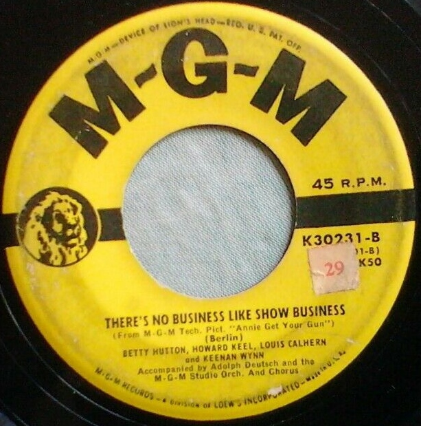 06 50....K30231-A M-G-M K50….BETTY HUTTON and HOWARD KEEL Accompaniment by Adolph Deutsch and the M-G-M Studio Orchestra..Anything You Can Do (45-8002-B)/-B….BETTY HUTTON, HOWARD KEEL, LOUIS CALHERN and KEEN WYNN Accompaniment by Adolph Deutsch and the M-G-M Studio Orchestra and Chorus..There's No Business Like Show Business (45-8001-B)