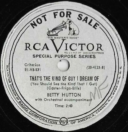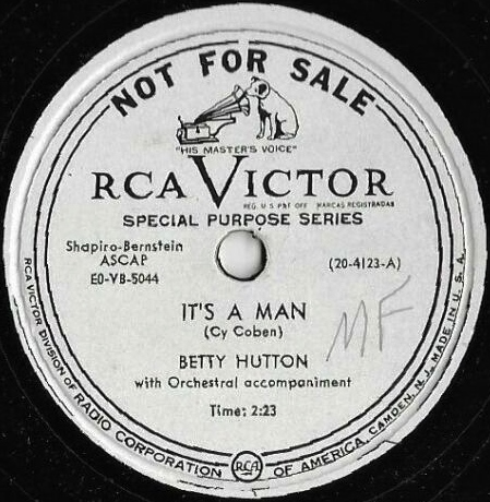 04 51....47-4123-A....Betty Hutton with Orchestral Accompaniment..It's A Man/-B….That's The Kind Of Guy I Dream Of (You Should See The Kind That I Get)