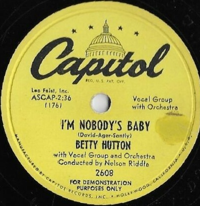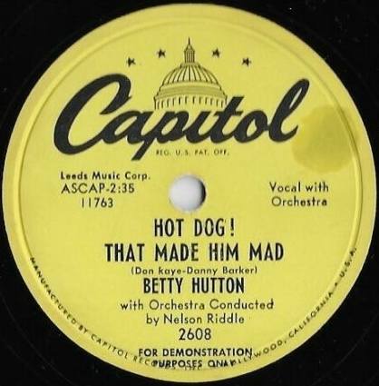 10 53....F2608....BETTY HUTTON with Orchestra Conducted by Nelson Riddle..Hot Dog! That Made Him Mad (45-11763)/BETTY HUTTON with Vocal Group and Orchestra Conducted by Nelson Riddle..I'm Nobody's Baby (45-11761)