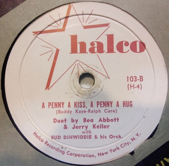 ?? 51....103-A....Duet by Bea Abbott & Jerry Keller with BUD DINWIDDIE & his Orch. ..You’re Just In Love (H-10)/-B….A Penny A Kiss, A Penny A Hug (H-4)