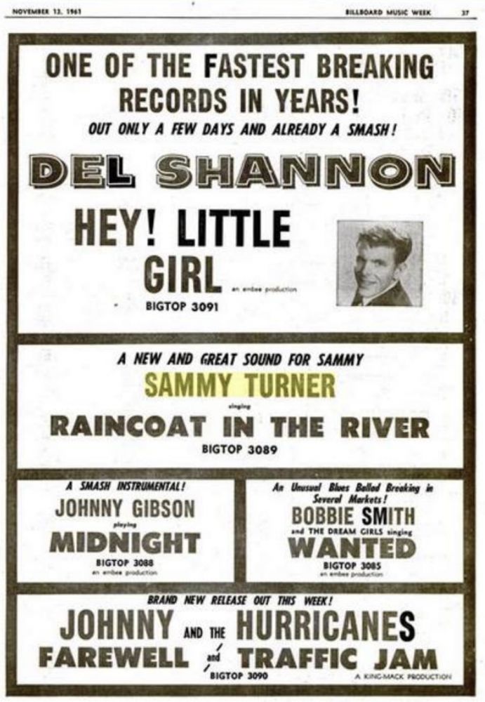 Februar 1961 Del Shannon Anhänge an diesem Beitrag Dateiname: Bigtop15.jpg Dateigröße: 223.23 KB Titel: Heruntergeladen: 64 Dateiname: Bigtop15b.jpg Dateigröße: 183.56 KB Titel: Heruntergeladen: 61