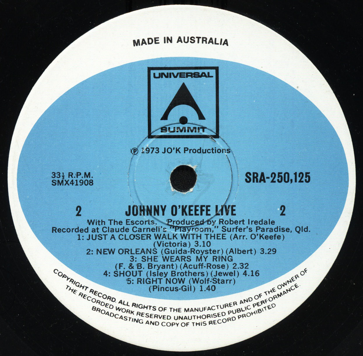John Michael O’Keefe was born on January 19, 1935. His parents Ray and Thelma both sang and Thelma was also an accomplished pianist. Ray was the leader of “Ray O’Keefe and The Club Royals” and in addition to operating his own furniture business was also Mayor of Waverley Council in the early 60’s