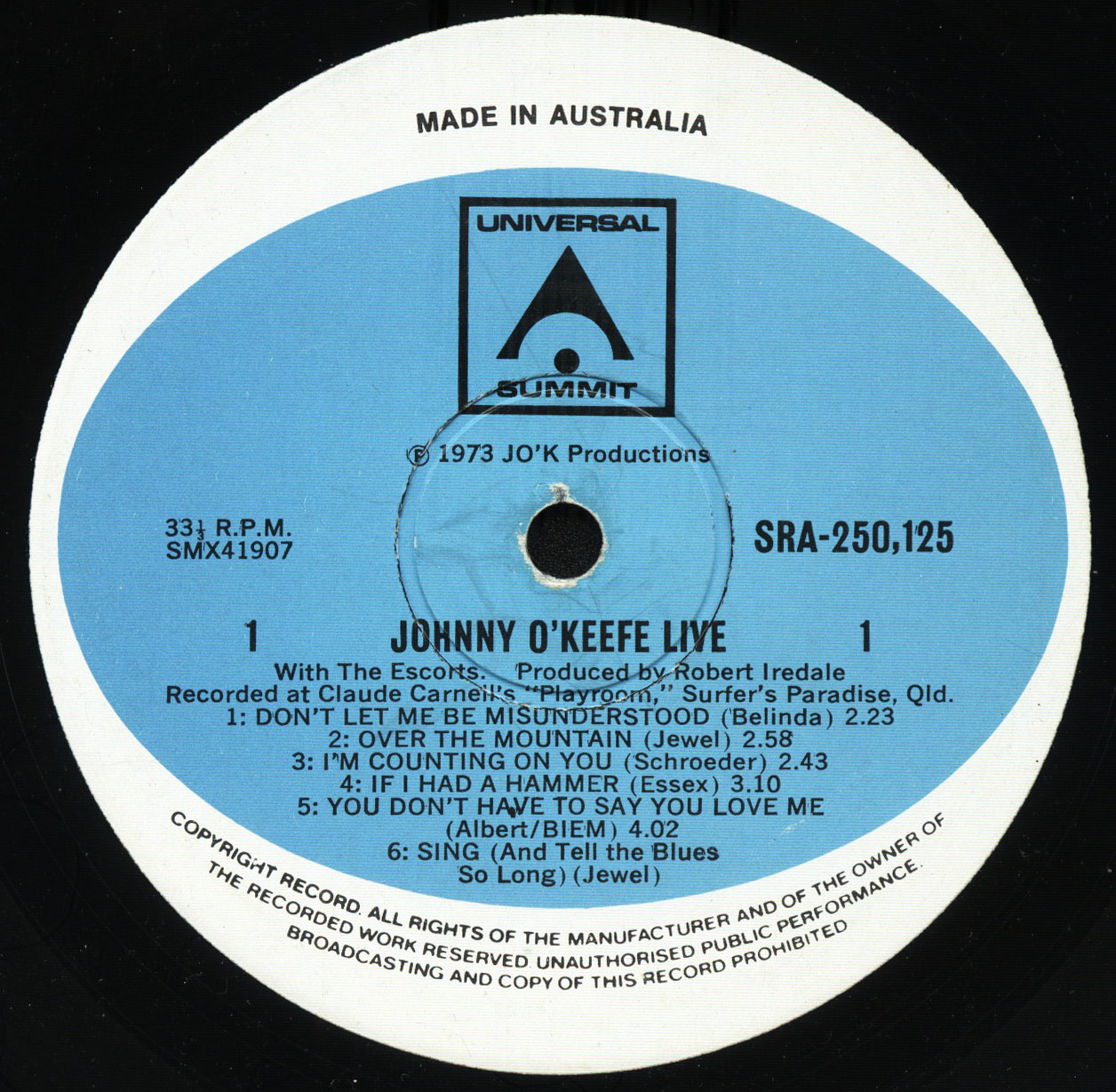During 1959/60 J O’K toured and recorded in the USA and signed with Liberty Records. “She’s My Baby” sold over 100,000 copies in America and “It’s Too Late” attained No. 1 in New Orleans.