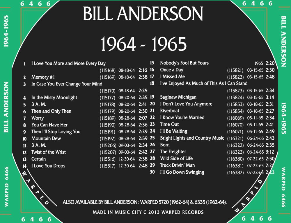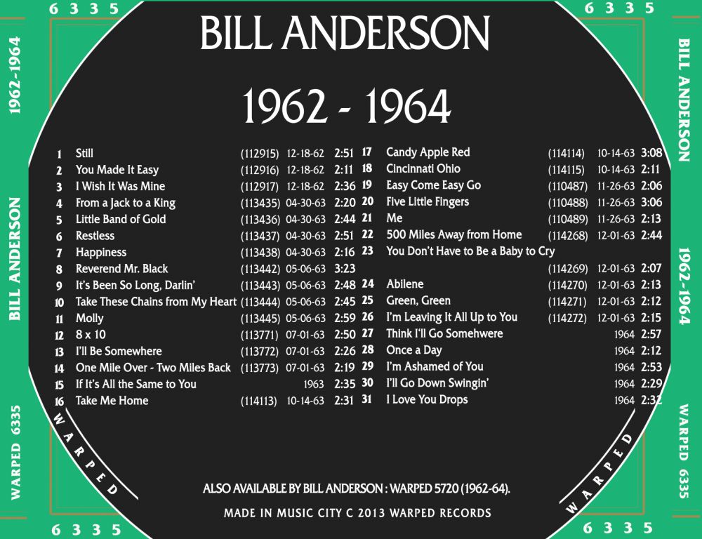 Bill Anderson’s Singles mit Details (Matrix etc.) bis 1963: