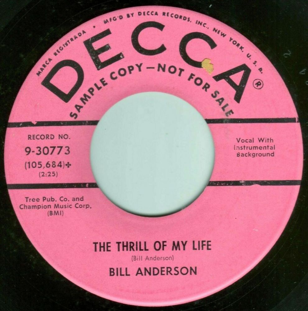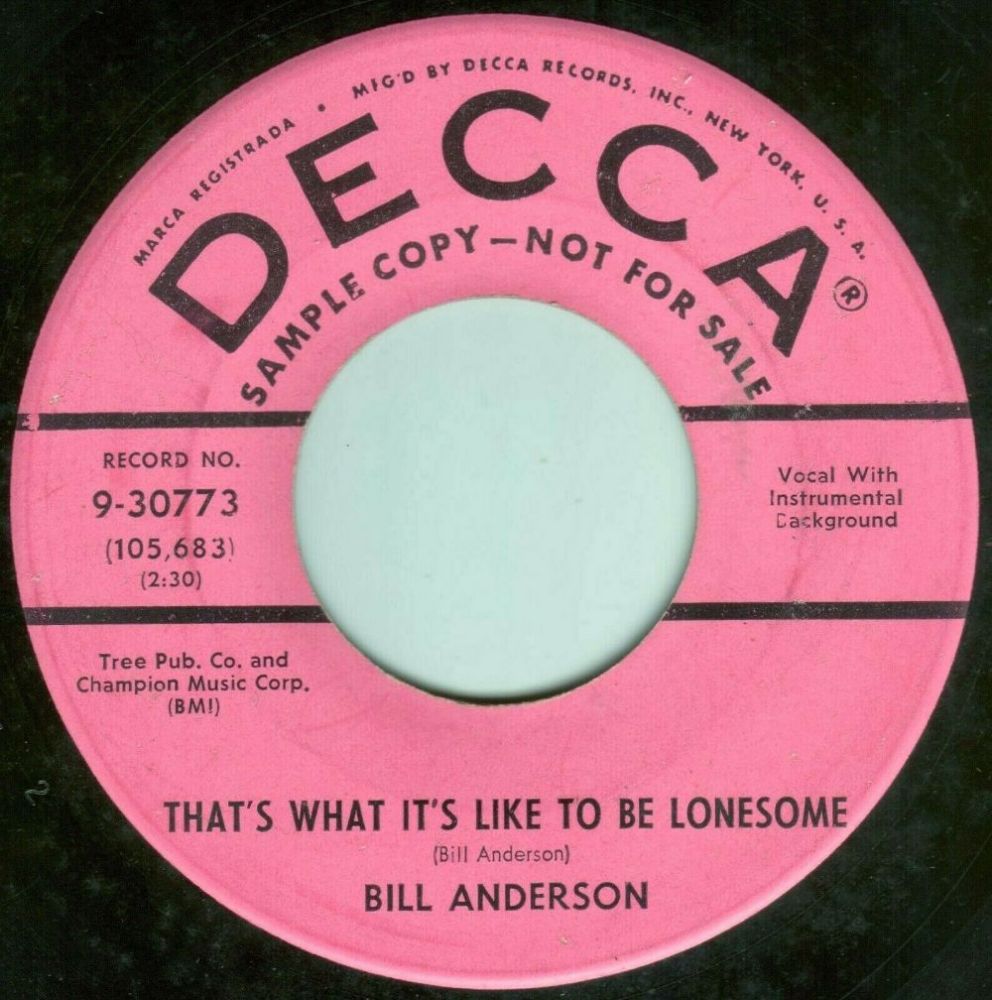 11 58....9-30773....BILL ANDERSON..That's What It's Like To Be Lonesome (105,683)/The Thrill Of My Life (105,684)