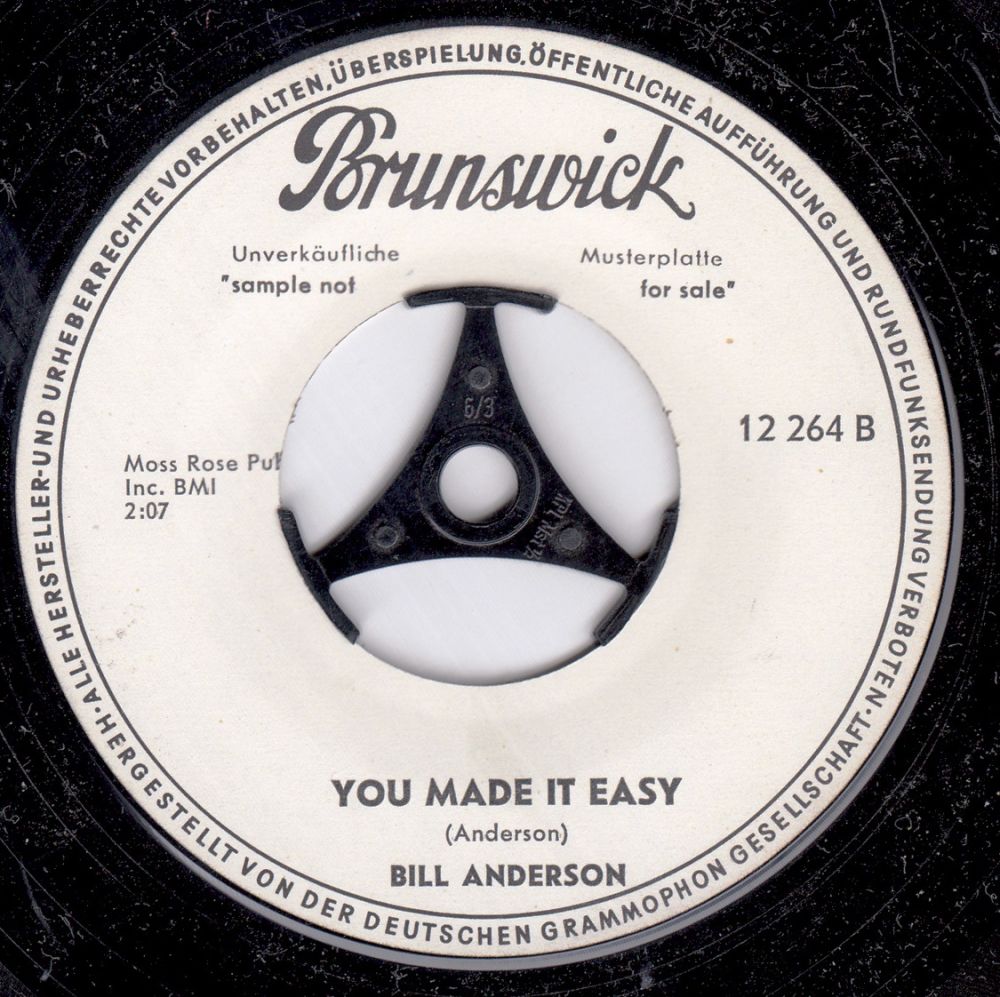 12 63….31577….BILL ANDERSON Vocal With Chorus And Instrumental Accompaniment..Easy Come-Easy Go (114,236)/Five Little Fingers (114,237)