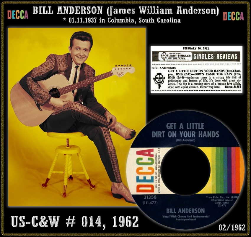 02 62....31358....BILL ANDERSON Vocal With Chorus And Instrumental Accompaniment..Get A Little Dirt On Your Hands (111,477)/Down Came The Rain (111,478)