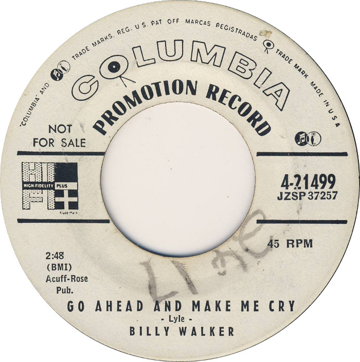 10 61....S7 31185 - JS7 - 36….BILLY WALKER..Just Call Me Lonesome (From Now On) (ZSM 54960 JB)/Let's Think About Living (ZSM 54961 JB)