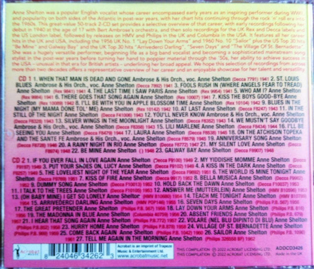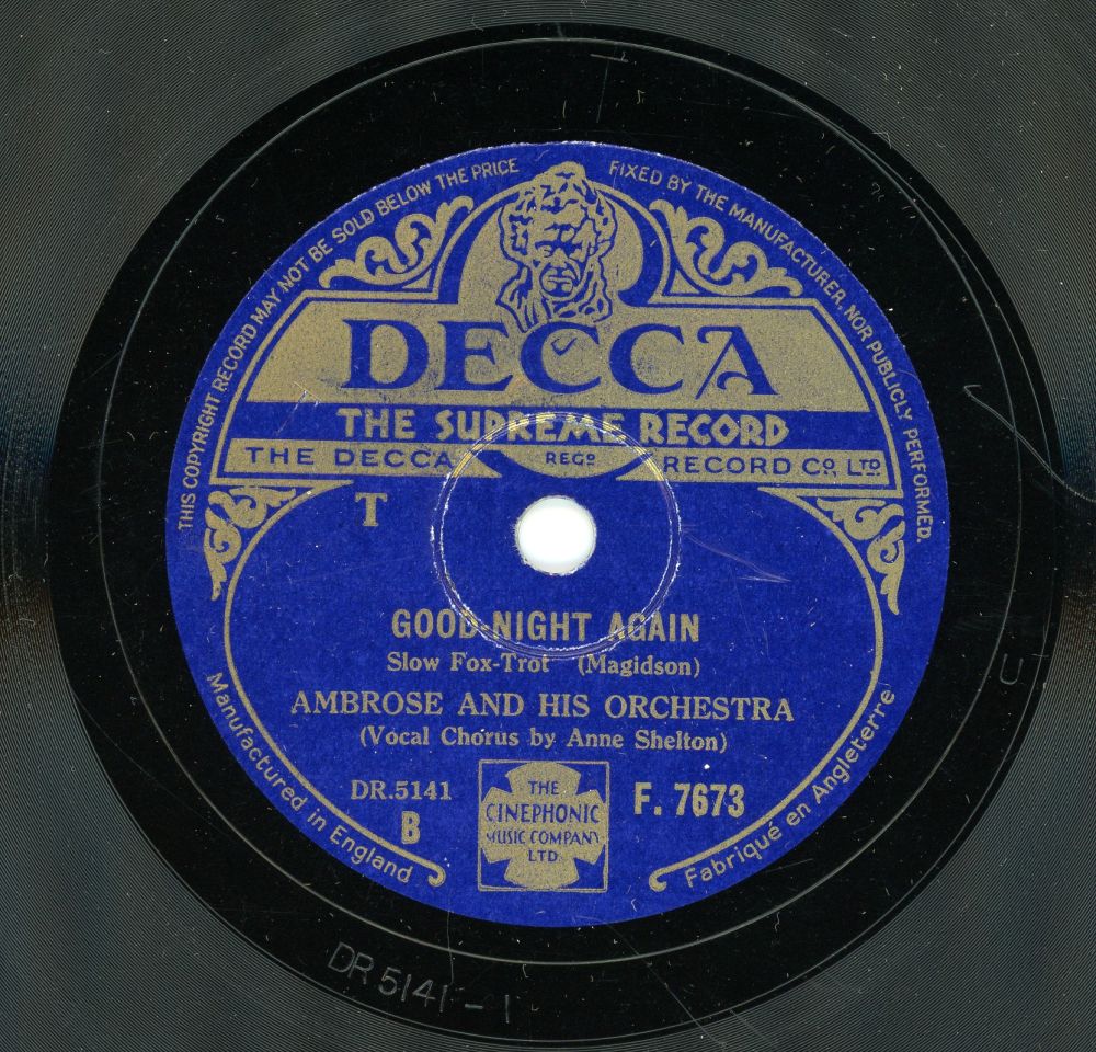 und bei den beiden Schellacks jeweils nur auf einer Seite vertreten ,-) Anhänge an diesem Beitrag Dateiname: Ambrose Orchestra vo … (2).jpg Dateigröße: 220.95 KB Titel: Heruntergeladen: 52 Dateiname: Ambrose - vocal Anne … (2).jpg Dateigröße: 105.55 KB Titel: Heruntergeladen: 52 Dateiname: Shelton, Anne auf 62 (1).jpg Dateigröße: 59.91 KB Titel: Heruntergeladen: 52