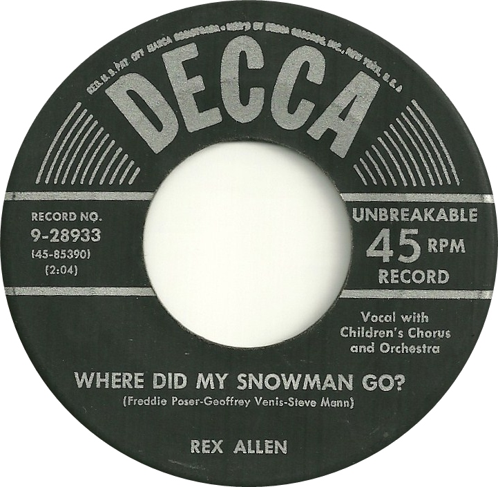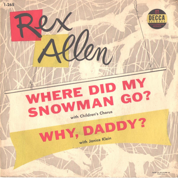 11 53....9-28933....REX ALLEN..Where Did My Snowman Go? (45-85390)/REX ALLEN With JANICE KLEIN..Why, Daddy? (45-85391)