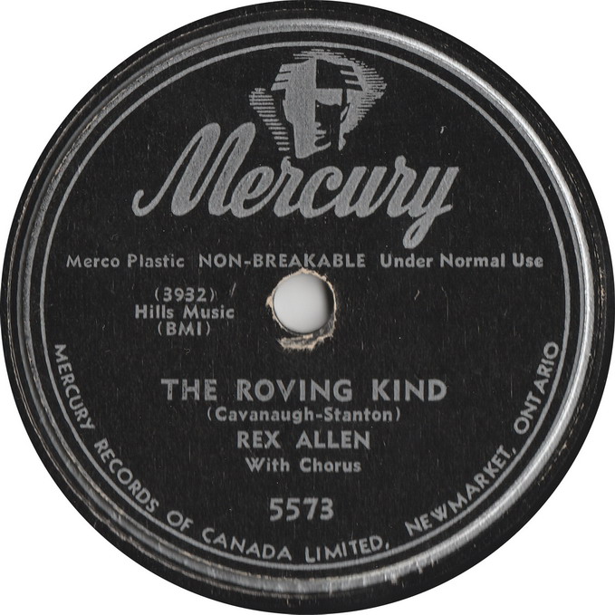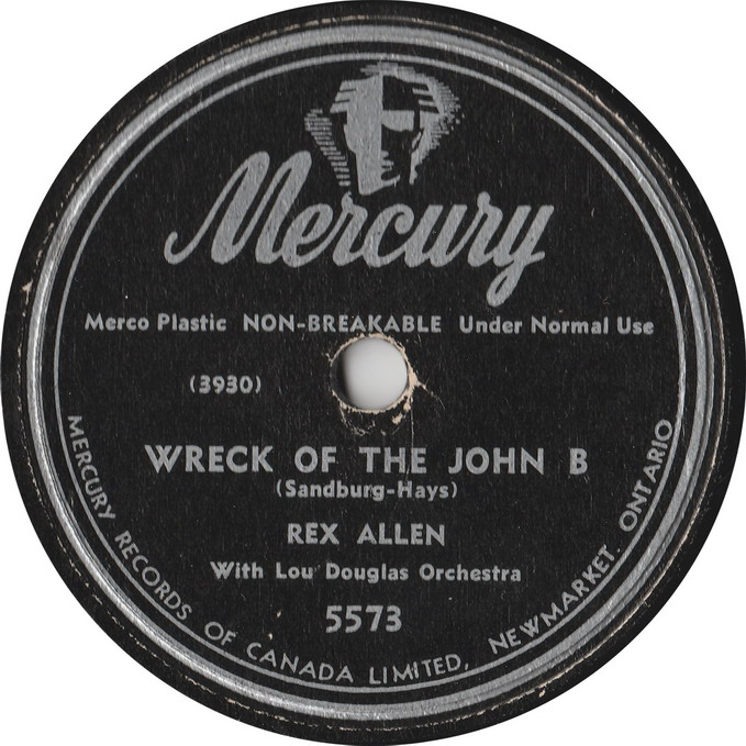 01 51....5573-X45....REX ALLEN With Chorus..The Roving Kind (3932)/REX ALLEN With Lou Douglas Orchestra..Wreck Of The John B (3930)