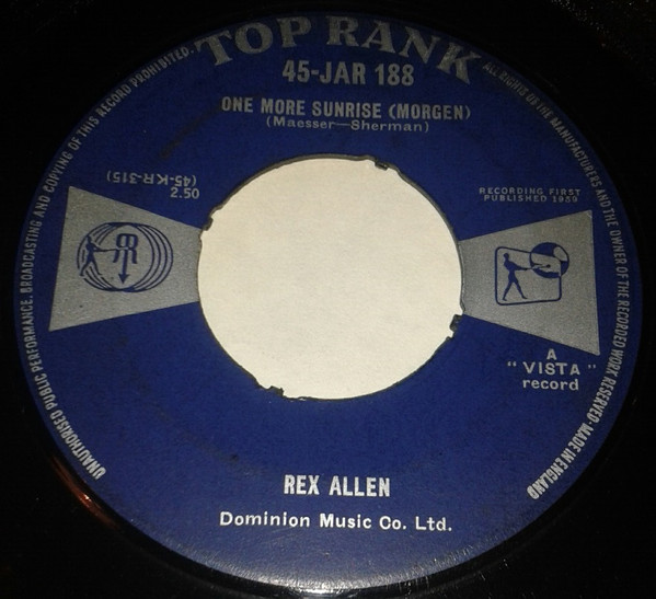 08 59....F-347....REX ALLEN CAMARATA ORCHESTRA..Morgen One More Sunrise (SIDE A)/The Little Old Church In The Valley (SIDE B)
