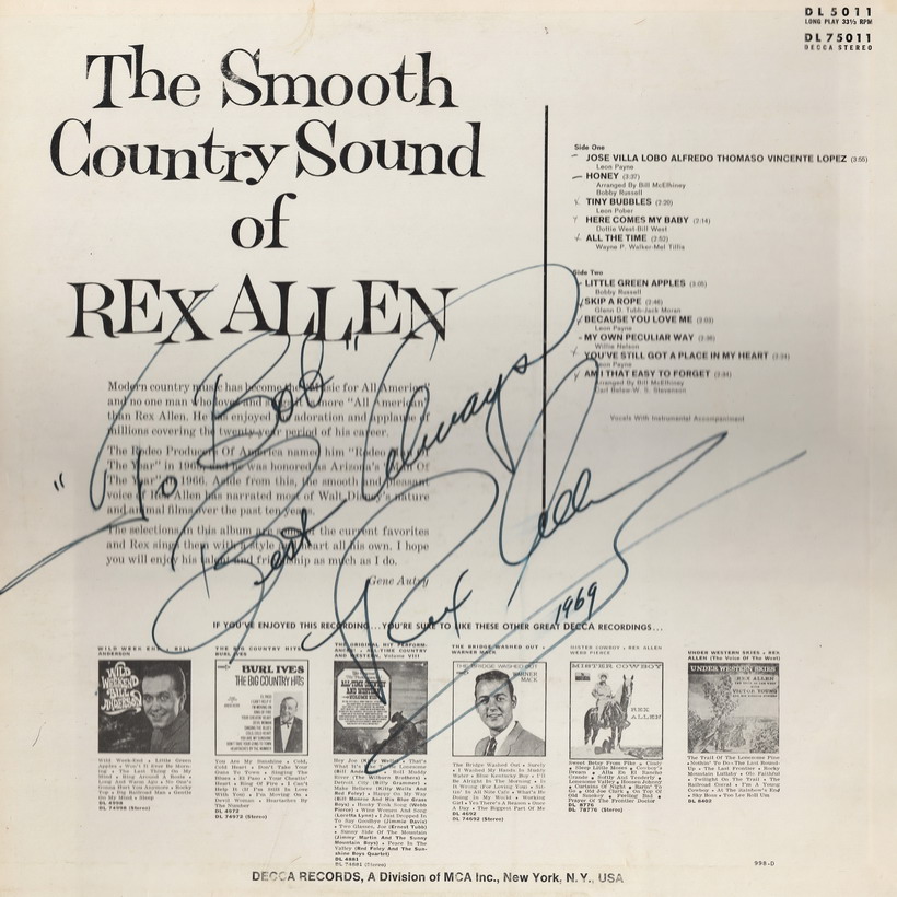 DECCA 01 52....9-27952....REX ALLEN With The ANITA KERR SINGERS..As Long As The River Flows On (45-81823)/REX ALLEN..The Waltz Of The Roses (45-81806)
