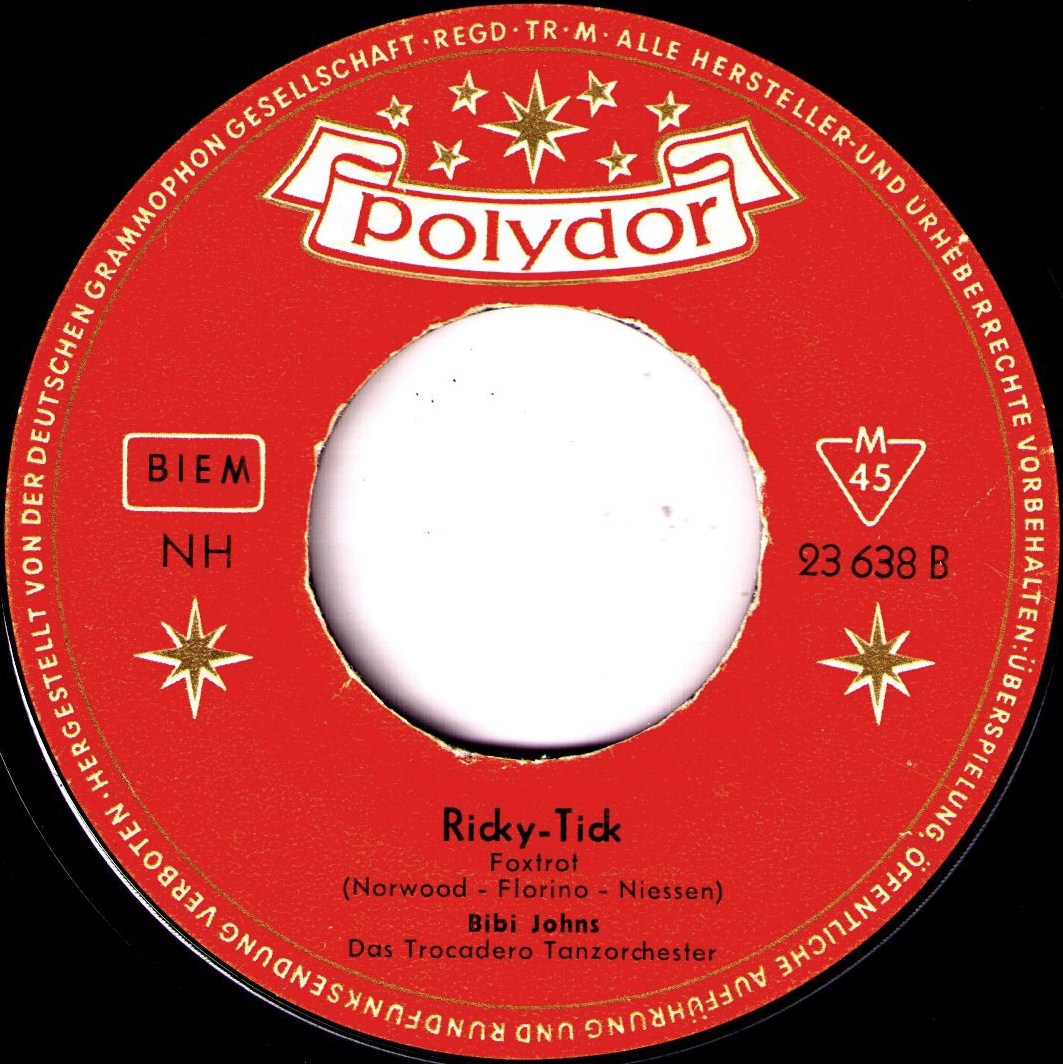 Okt. 1953 Stippvisite in Deutschland u. im November 1953 als BIBI JOHNSON erste Schallplattenveröffentlichung ("Sehnsucht"/"Ich Habe Solche Angst"-EG 8019) für Electrola (Aufnahmen bis 1958),