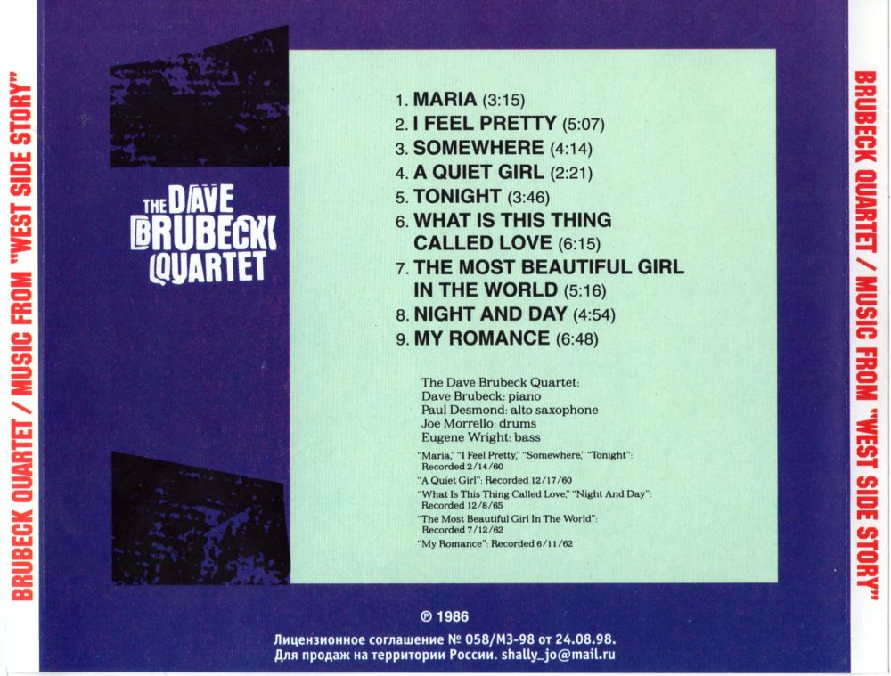 03 54....530X....DAVE BRUBECK Piano Solo..My Heart Stood Still (1501)/DAVE BRUBECK QUARTET DAVE BRUBECK, Piano PAUL DESMOND, Alto Sax RON CROTTY, Bass LLOYD DAVIS, Drums..The Trolley Song (1502)