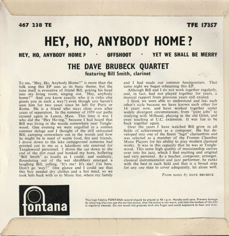 12 60....549X....DAVE BRUBECK QUARTET Featuring Bill Smith..The Piper (F-1934)/Soliloquy (F-1935)