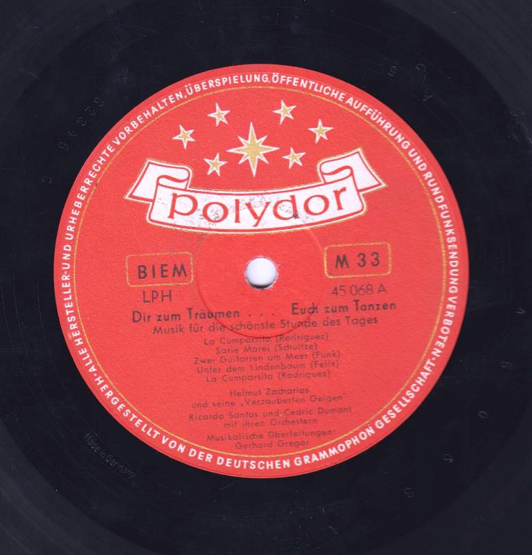 die Serie in Sprachgruppen eingeteilt (links klicken). Produktionen der italienischen POLYDOR bzw. deutsche Produktionen für den italienischen Markt begannen mit 22 730 (78er: 49 730). Zu diesem Zeitpunkt war die Nummerierung von 78ern und 45ern bereits einheitlich, lediglich das Präfix war unterschiedlich (49 bzw. 22). Es wurde aber nicht jede 78er zur 45er. Deine Schellack hätte als 45er die Nummer 22 730, ob es sie tatsächlich gegeben hat, dafür war kein Hinweis zu finden.