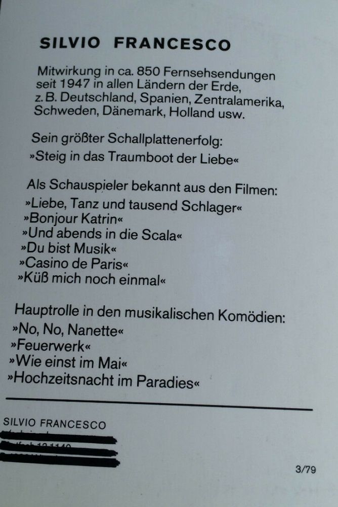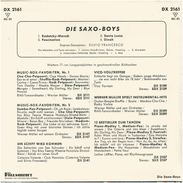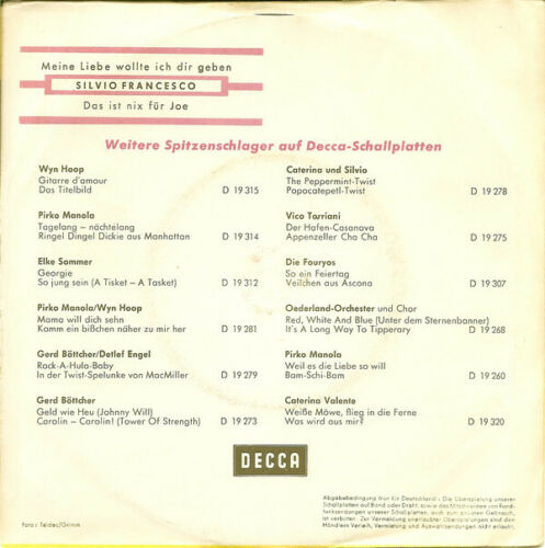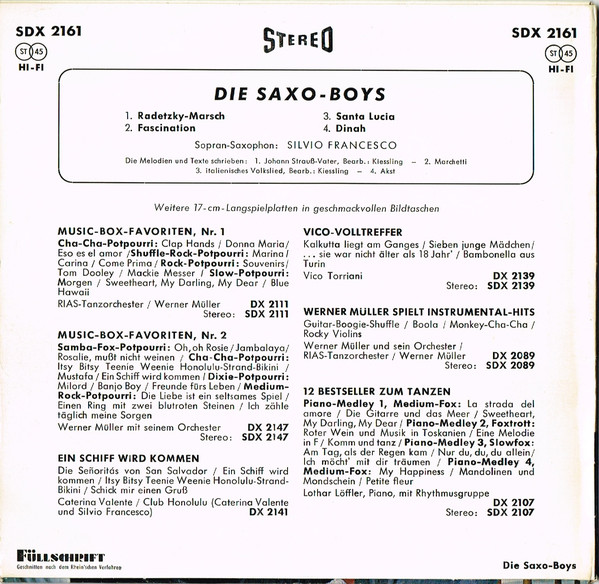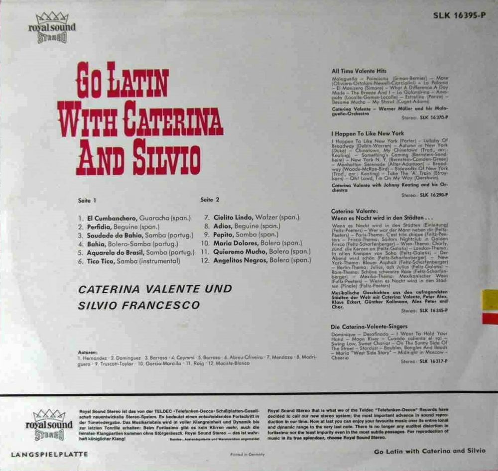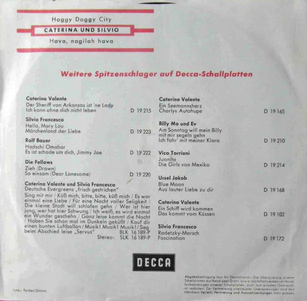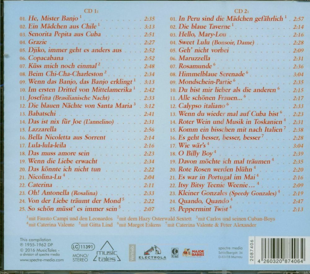 Caterina, Oui Oui Oui Oui, Von Der Liebe Traeumt Der Mond (Und Gitta Lind), Blue Night, 24 Ore Al Giorno, Der Pullover, Hello, Mary Lou, Monique, Eine Ganze Nacht, Geh´ Nicht Vorbei, Quattro Lacrime, Oh! Oh!, Oh! Antonella, Sweet Lulu, So Schoen Muesst´ Es Immer Sein (Und Gitta Lind), Ola, Ola, Ola, Maerchenland Der Liebe, Meine Liebe Wollte Ich Dir Geben, Paco Peco, Alabama,Bill, Tanz Mit!, Liebe Ist Ein Labyrinth, Playboy Madison (Ich Bin Kein Playboy), Ja, Die Herren Mexikaner, Trullala, Trullala, Trullalei, Traeume Sind Wie Rosen, Kaktus Im Fuss, Dann Klingelt Das Telefon, Ein Bisschen Von Bardot, Das Hab´ Ich Mir Gleich Gedacht, Bleib Bei Mir, Vieni E Vai, Oui Oui Oui Oui (Italienisch)