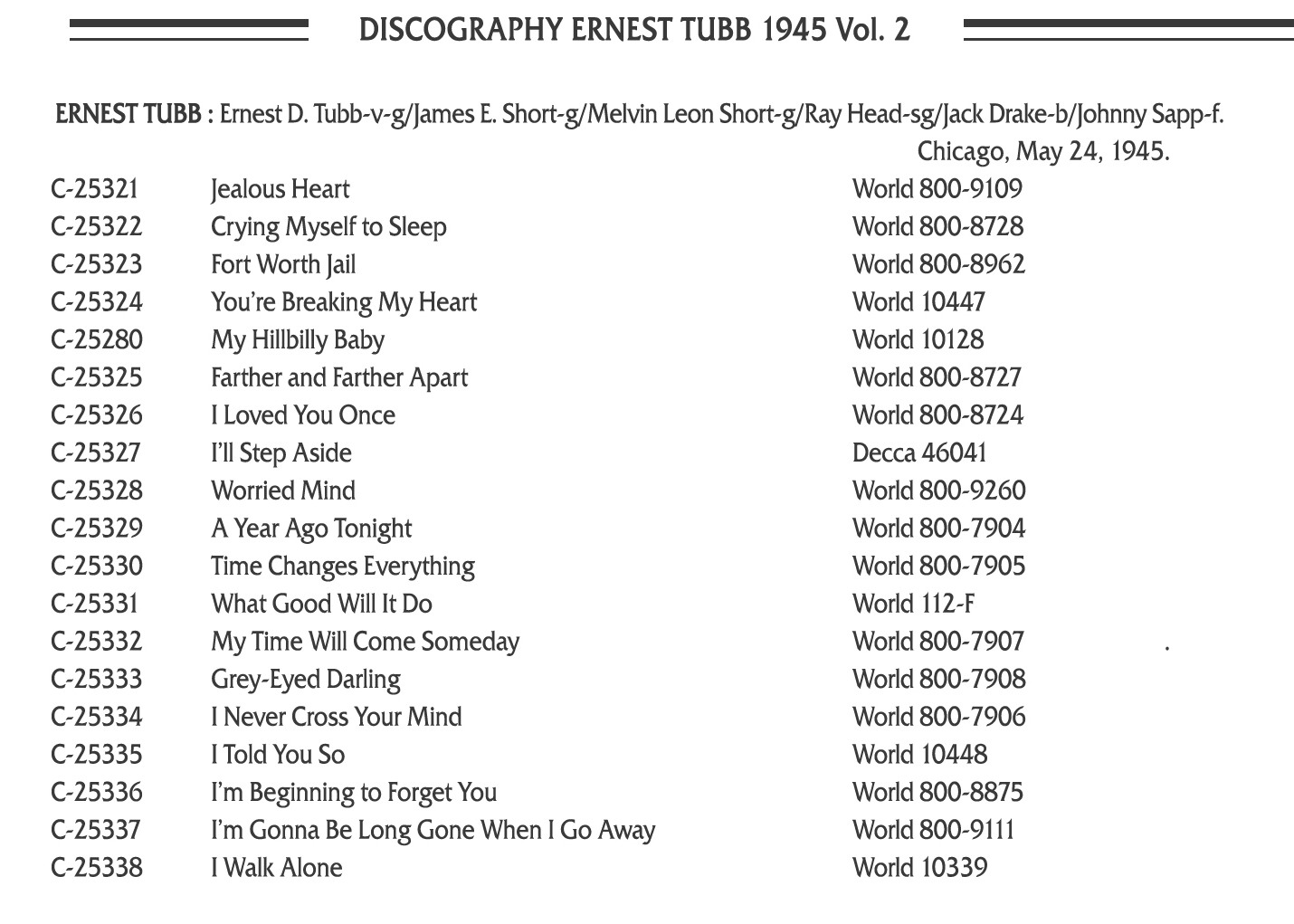 21 May 1945 [10:45-13:15] Chicago, IL - Ernest Tubb (Leon Short [gt], Ray Head [steel], Jack Drake [bass], Johnny Sapp [fiddle]) [radio transriptions]