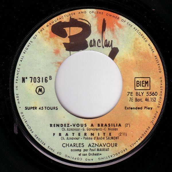 ?? 60….Nº 60214 A….Charles Aznavour..Plus heureux que moi/ B….Rendez-vous à Brasilia