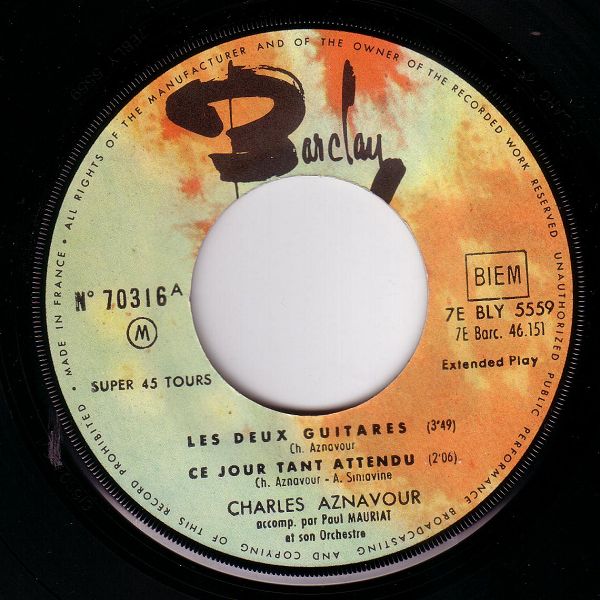 ?? 61….45 057 A….Charles Aznavour..Spiel Zigeuner (Les deux guitares)/Krieg und Liebe (BARCLAY)