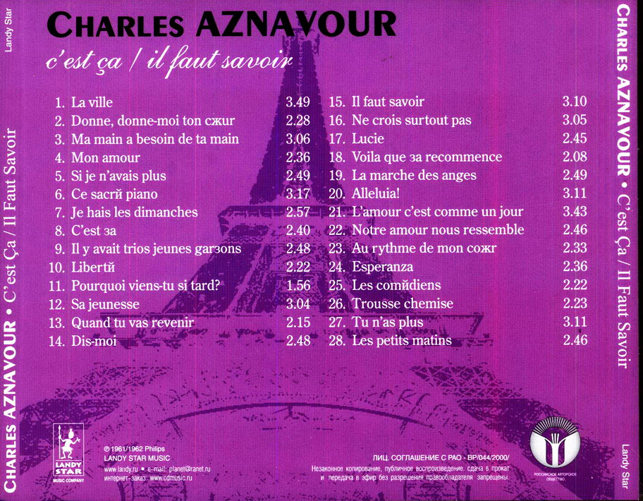 ?? 58….500 V 311….CHARLES AZNAVOUR..La ville/Ton beau visage