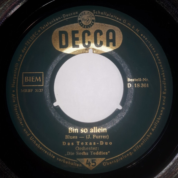 ?? 57....D 18 361....Das Texas-Duo Orchester: „Die Sechs Teddies"..Bin so allein/Meine Liebesmelodie