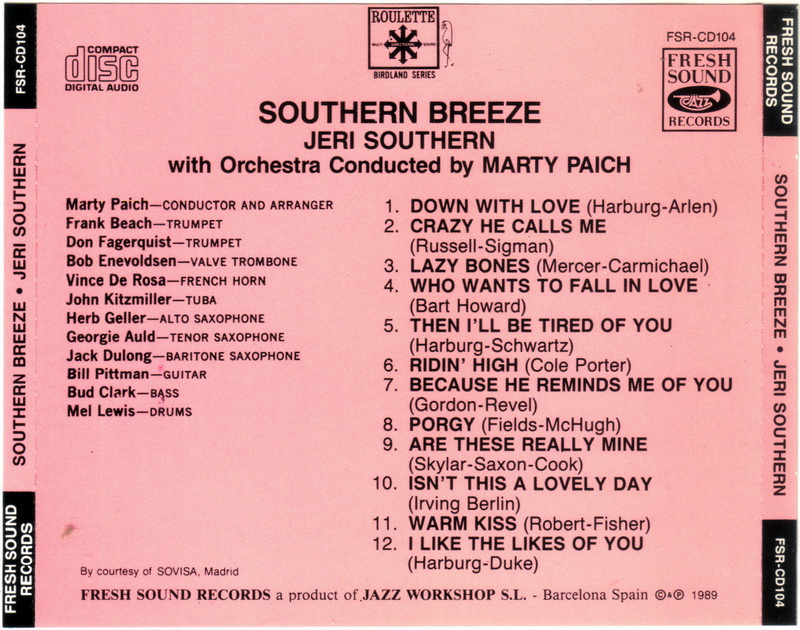 Die Jazz-Pianistin und Sängerin Jeri Southern wurde am 5. August 1926, nahe dem Dorf Royal in Nebraska, als Genevieve Lillian Hering geboren und verstarb am 4. August 1991 in Los Angeles, Kalifornien, fast 65-jährig, an einem Herzinfarkt.