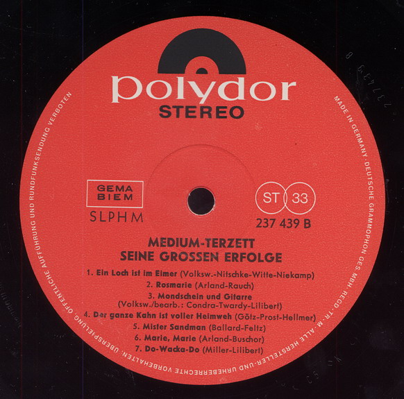 WELFEN-TRIO, Das, Gesangtrio, Odeon, Metronome (u.a. "Evelyn"/"Desperado"), 1962 auf Polydor als MEDIUM TERZETT