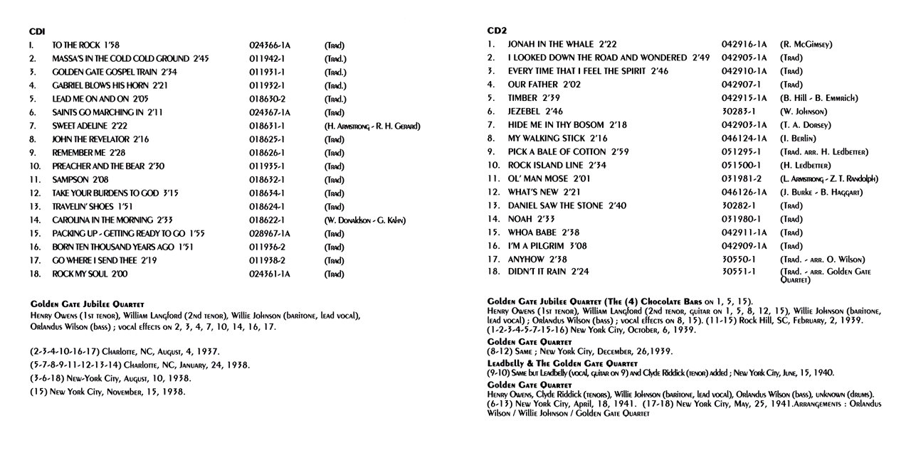 Das Golden Gate Quartet wurde im Jahre 1934 von William Langford, erster Tenor, Henry Owens, zweiter Tenor, Willie Johnson, Bariton, und Orlandus Wilson, Bass, allesamt vier Studenten der Booker T. Washington High School in Norfolk, Virginia, als Golden Gate Jubilee Quartet gegründet. Ab 1940 entschlossen sie sich für den gekürzten Namen. Naturgemäß gab es einige Besetzungsänderungen und ab 1949 bis zum Jahre 1963 war die Besetzung wie folgt: erster Tenor Clyde Riddick; zweiter Tenor Henry Owens, ab 1951 Altin Bradley und ab 1952 Eugene Mumford; Bariton Orville Brooks, ab 1955 Bill Bing, ab 1956 Frank Todd und ab 1957 Caleb Ginyard; Bass Orlandus Wilson.