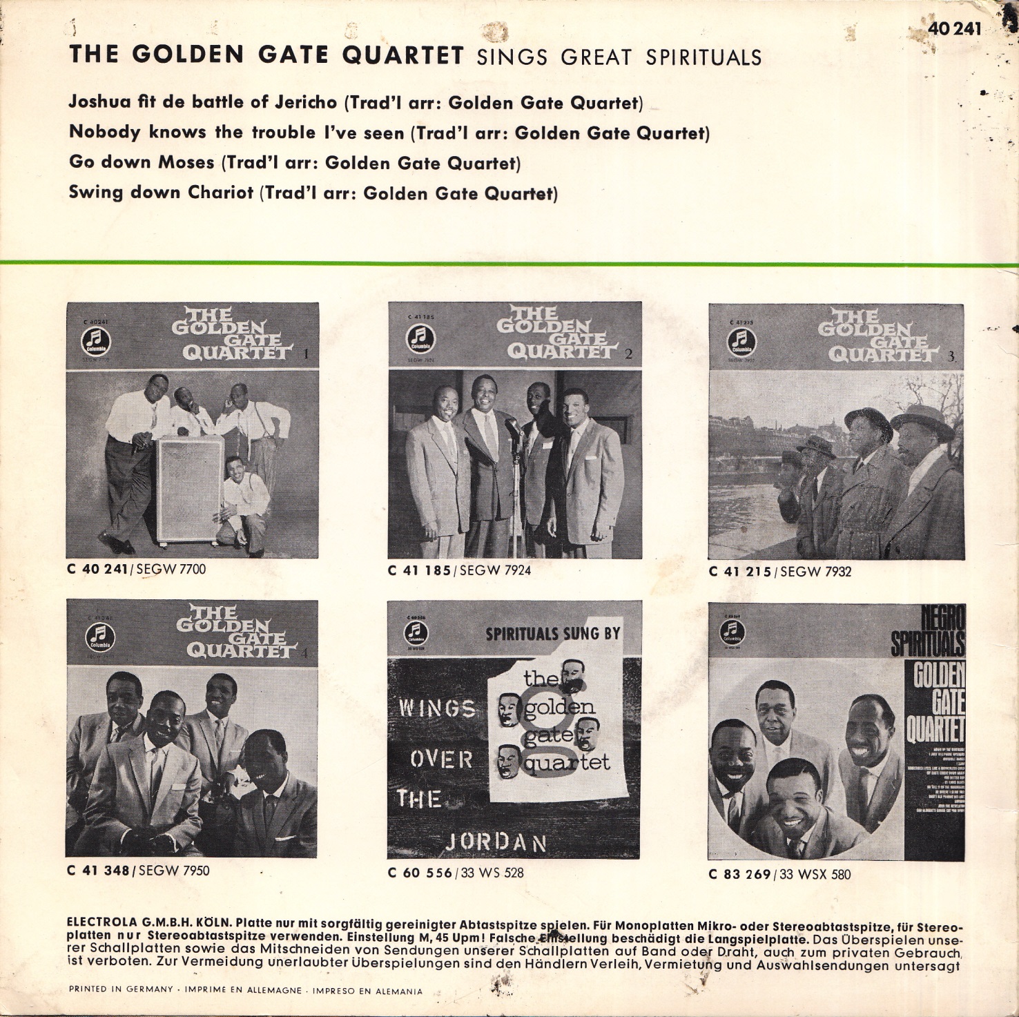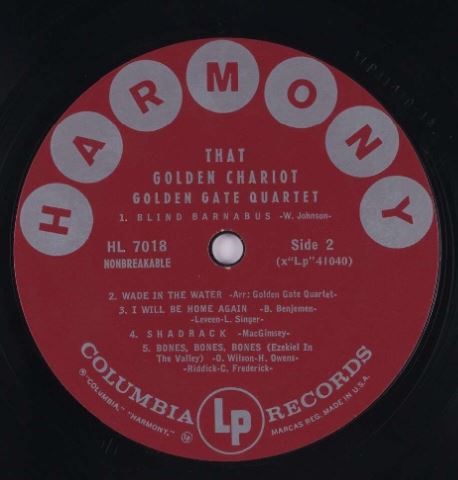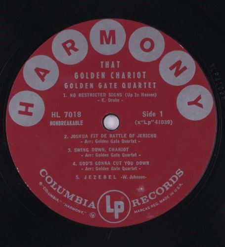 04 62....C 21 858....The Golden Gate Quartet..Get On Board/Great Gettin' Up Morning (GB: COLUMBIA LP 1370)