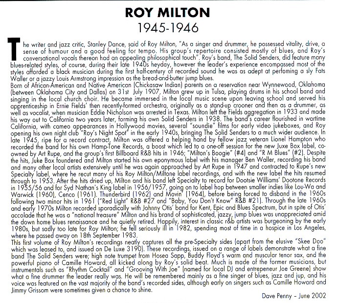 ... Anhänge an diesem Beitrag Dateiname: Later Roy Milton front.jpg Dateigröße: 182.56 KB Titel: Heruntergeladen: 135