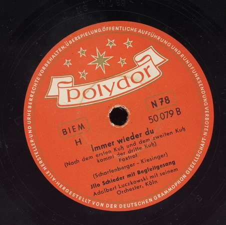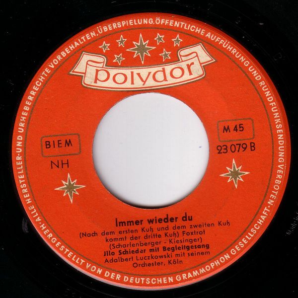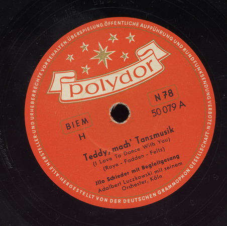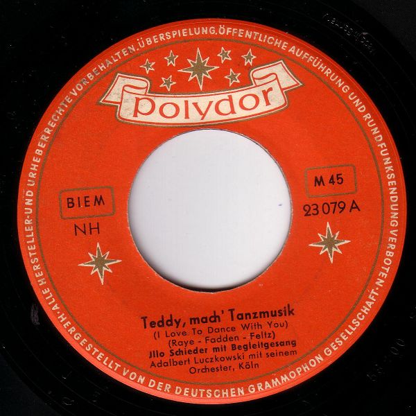 12 55....23 079 A....Jllo Schieder mit Begleitgesang Adalbert Luczkowski mit seinem Orchester, Köln..Teddy, mach' Tanzmusik (I Love To Dance With You)/ B....Immer wieder du (Nach dem ersten Kuß und den zweiten Kuß kommt der dritte Kuß)