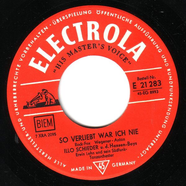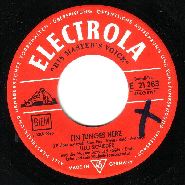 10 59....E 21 283....ILLO SCHIEDER u. d. Hansen-Boys Erwin Lehn und sein Südfunk-Tanzorchester..So verliebt war ich nie/ILLO SCHIEDER u. d. Hansen Boys und -girls - Erwin Lehn und sein Südfunk-Tanzorchester..Ein junges Herz (I'll close my eyes)
