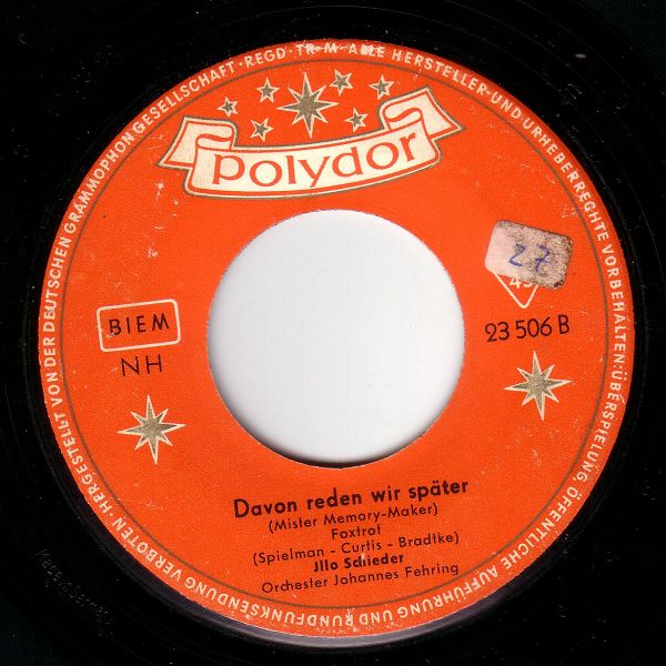08 57....23 506 A....Jllo Schieder Orchester Johannes Fehring..Dolly Dick (Lucky Lips)/ B....Davon reden wir später (Mister Memory-Maker)