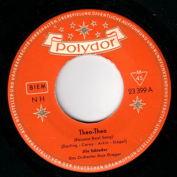05 57....23 399 A....Jllo Schieder Das Orchester Max Greger..Theo-Theo (Banana Boat Song)/ B....Was machen die Mädchen in Rio?