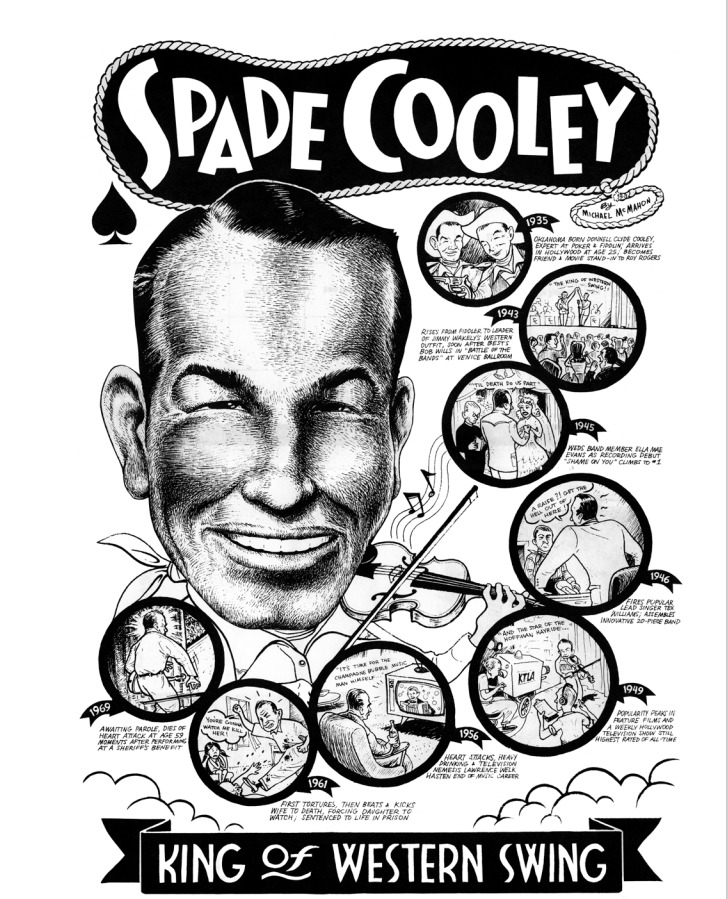Spade Cooley, Musiker und Schauspieler, dessen oft skandalöses Privatleben seine Karriere als Entertainer überschattete, bezeichnete sich selbst als König des Western Swing, einen Innovator, der auf dem Höhepunkt seiner Karriere die größte Band in der Geschichte der Country-Musik leitete.