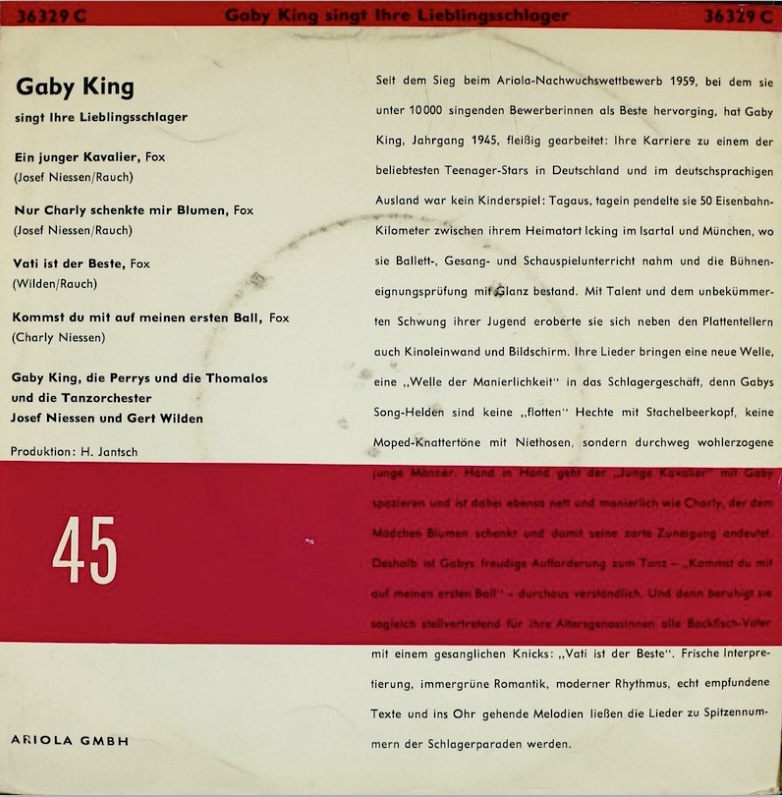 Ariola 36329 C (EP aus 1960) Anhänge an diesem Beitrag Dateiname: Agabi1a.jpg Dateigröße: 141.9 KB Titel: Heruntergeladen: 54 Dateiname: Agabi1d.jpg Dateigröße: 199.08 KB Titel: Heruntergeladen: 50