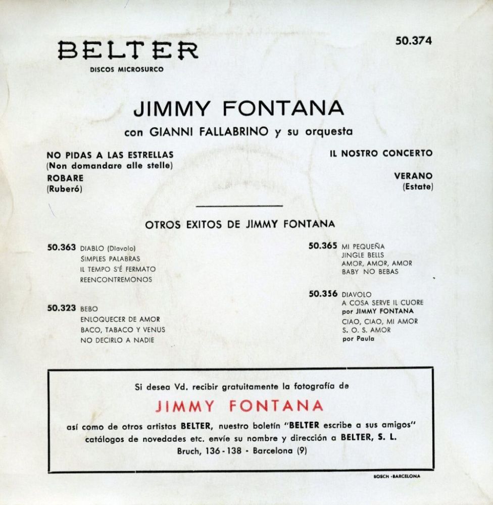 xx Anhänge an diesem Beitrag Dateiname: a front.jpg Dateigröße: 286.69 KB Titel: Heruntergeladen: 259 Dateiname: back.JPG Dateigröße: 28.93 KB Titel: Heruntergeladen: 255 Dateiname: Jimmy Fontana 1968 - … ront.jpg Dateigröße: 169.54 KB Titel: Heruntergeladen: 276 Dateiname: Jimmy Fontana 1968 - … Tras.jpg Dateigröße: 129.8 KB Titel: Heruntergeladen: 271 Dateiname: A.jpg Dateigröße: 103.89 KB Titel: Heruntergeladen: 255 Dateiname: B.jpg Dateigröße: 92.38 KB Titel: Heruntergeladen: 262