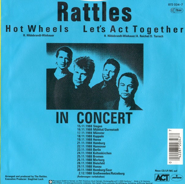 Zurück zu den Rattles. Lange nach Ednas Weggang, nämlich 1988, erschien der Hammersong "Hot Wheels". Hier die Single, dann eine Compilation aus den frühen 70ern.