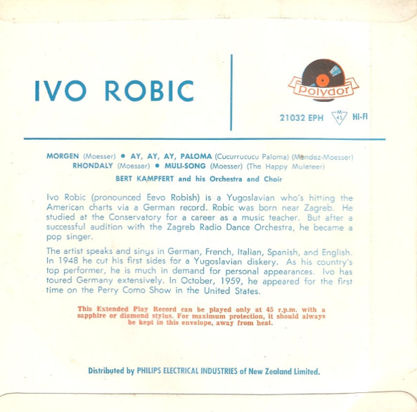 Columbia - 27 Juli 1959 USA, einzige Billboard-Notierung (# 98) neben Ivo Robic