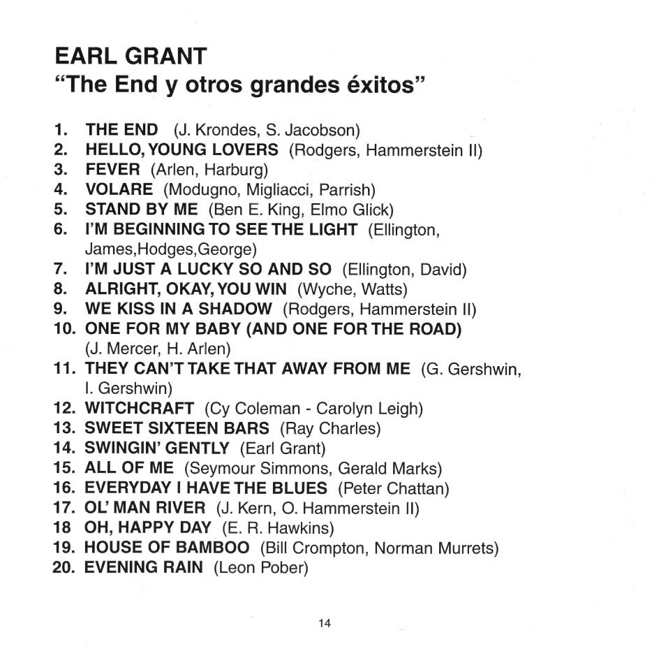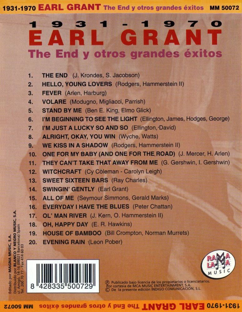 Der Jazz-Pianist, Organist, Multi-Instrumentalist und Sänger Earl Grant wurde am 20. Jänner 1931 in Idabel, Oklahoma, geboren und verstarb am 10. Juni 1970 in Lordsburg, New Mexico, erst 39-jährig, nach einem Autounfall. Seine Grabstätte befindet sich im "Forest Lawn Memorial Park", Hollywood Hills, Los Angeles.