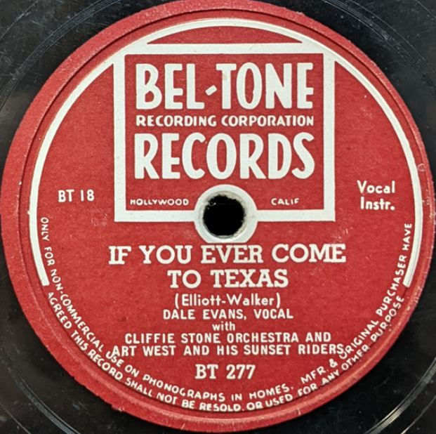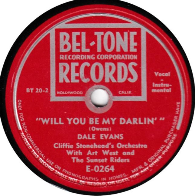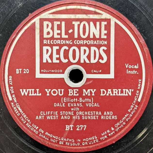 00 ??….BT 277…. DALE EVANS , Vocal CLIFFIE STONE ORCHESTRA With ART WEST AND THE SUNSET RIDERS..