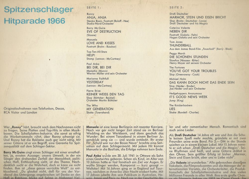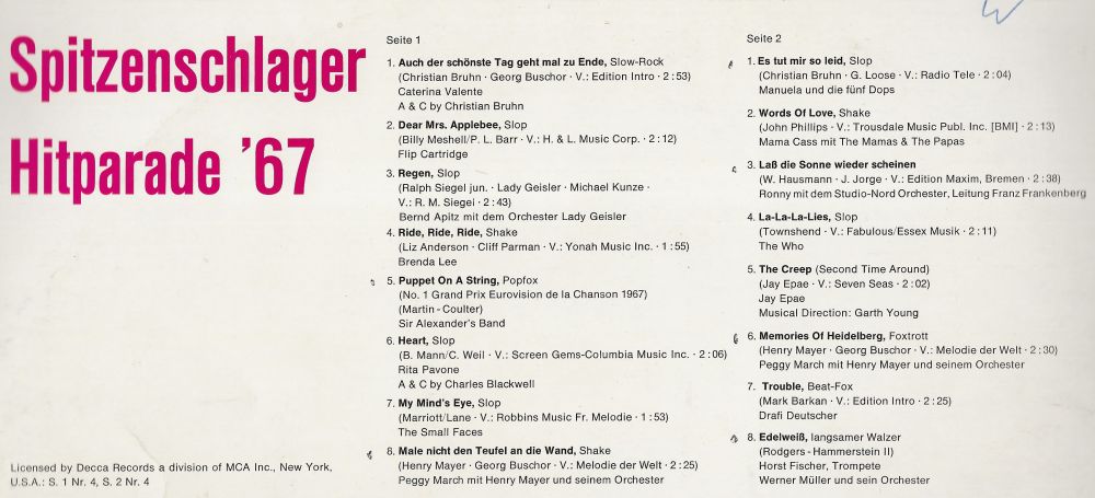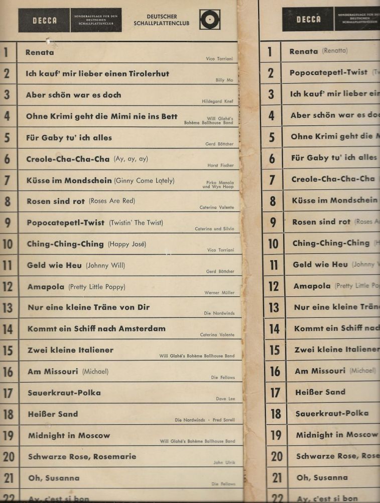 wie schon bei Spitzenschlager 1964 mal mit Pat Boone mal ohne (zu sehen bei Uwe Grimm)