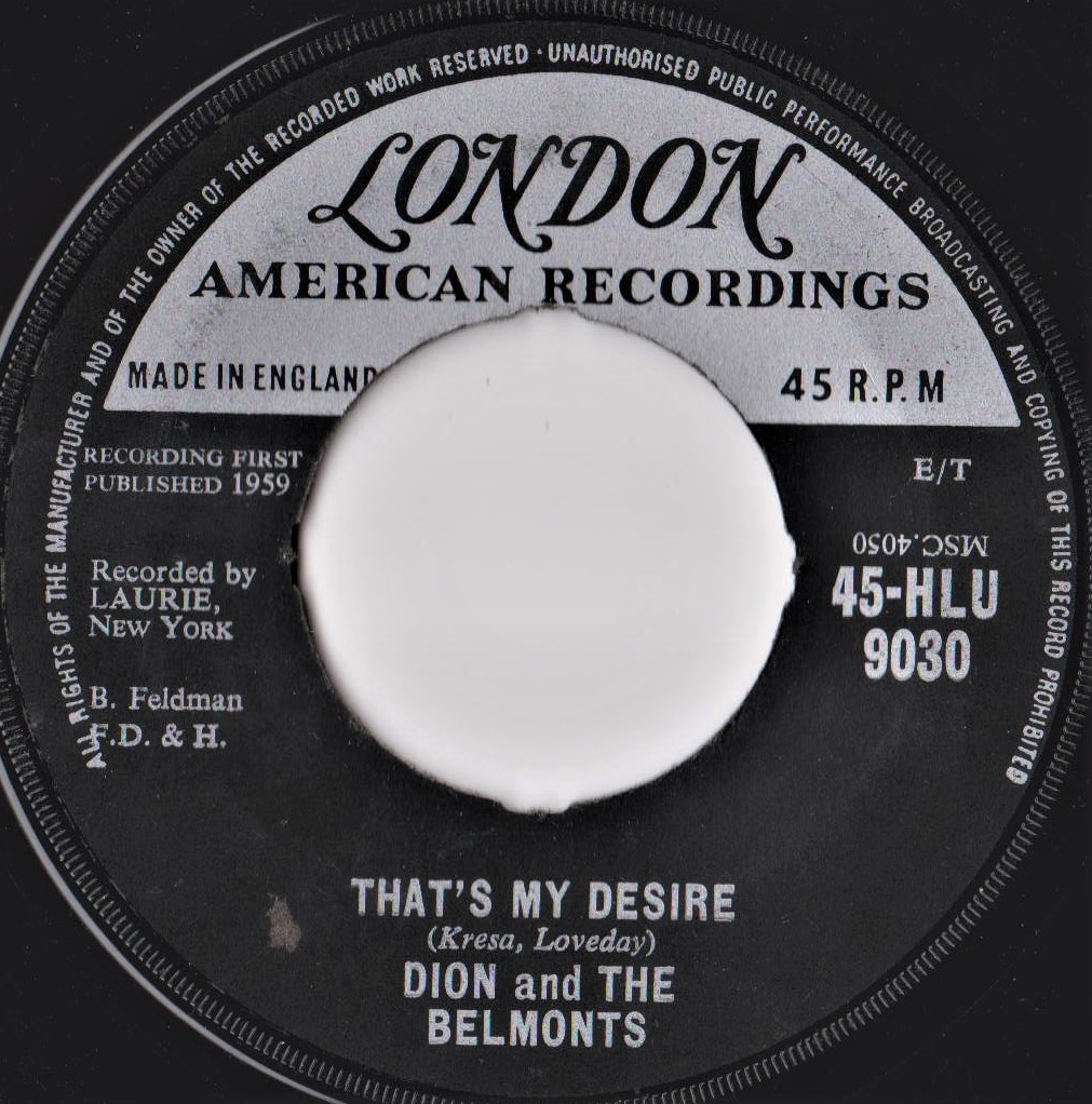 | Information: | DION AND THE BELMONTS - LONDON DL 20 190 |