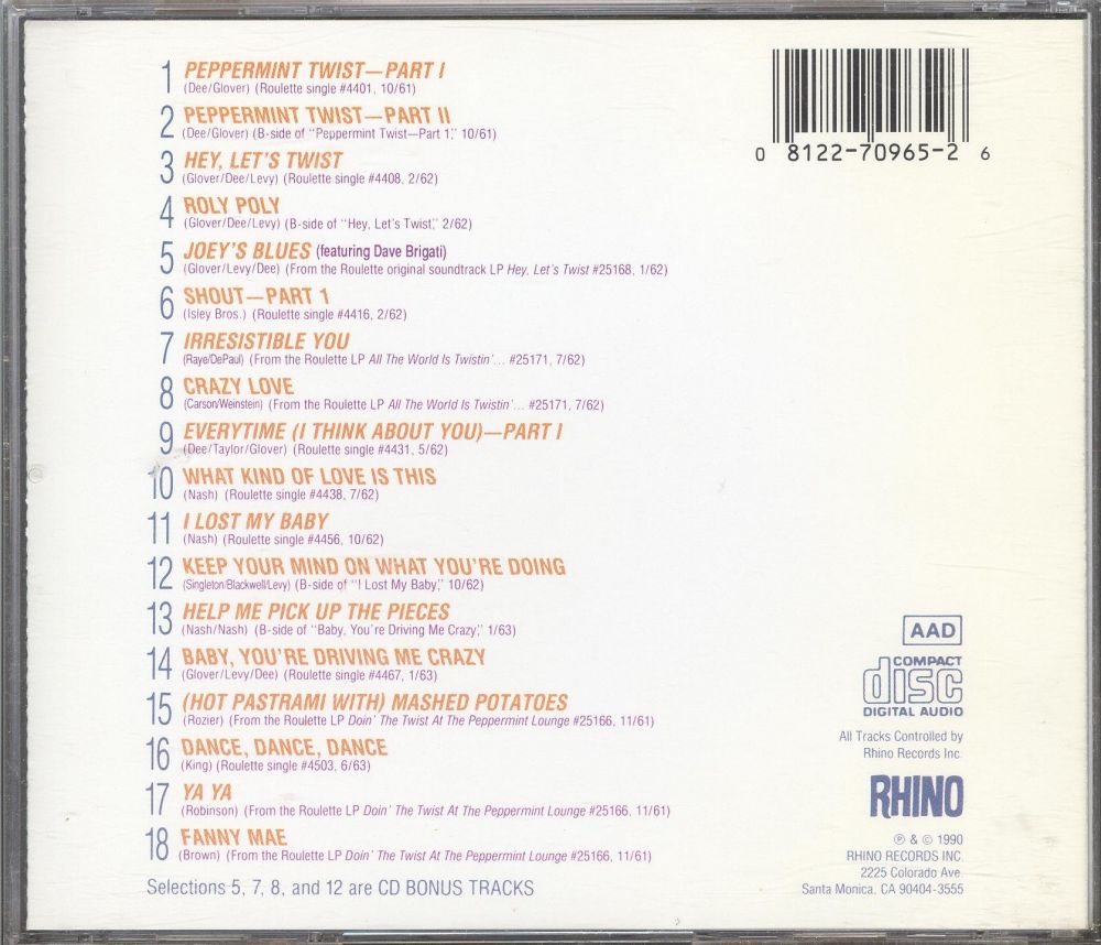 00 73....D-2493.... JOEY DEE and the Starliters..Peppermint Twist Part 1/Peppermint Twist Part 2