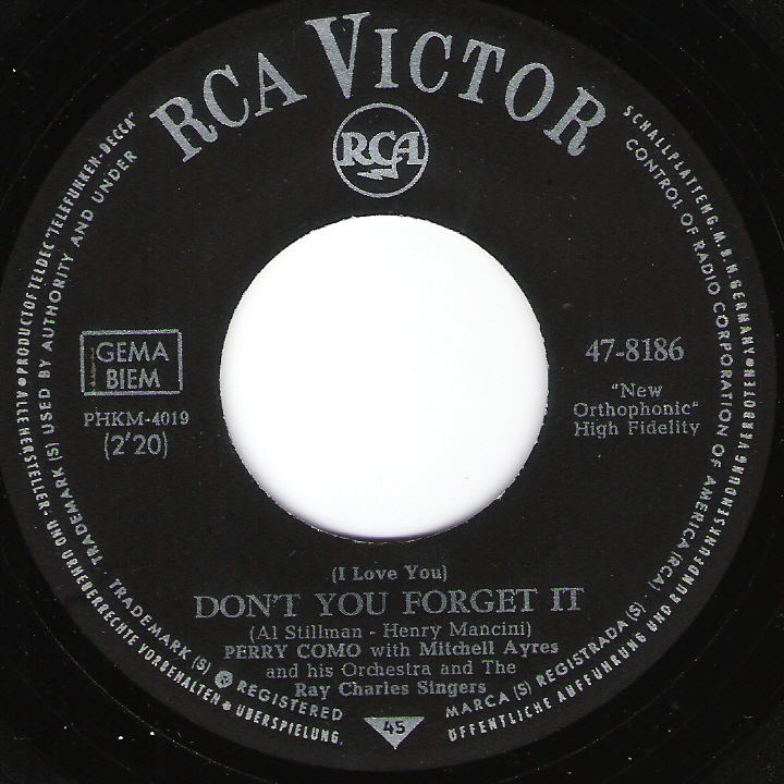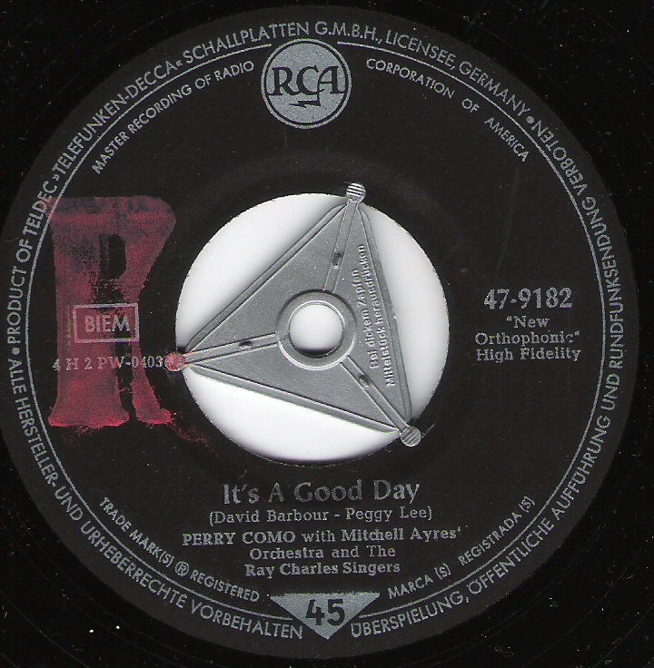 von Fall zu Fall erschienen Perry Comos alte RCA-Singles in den USA auch mit Bildcover ...